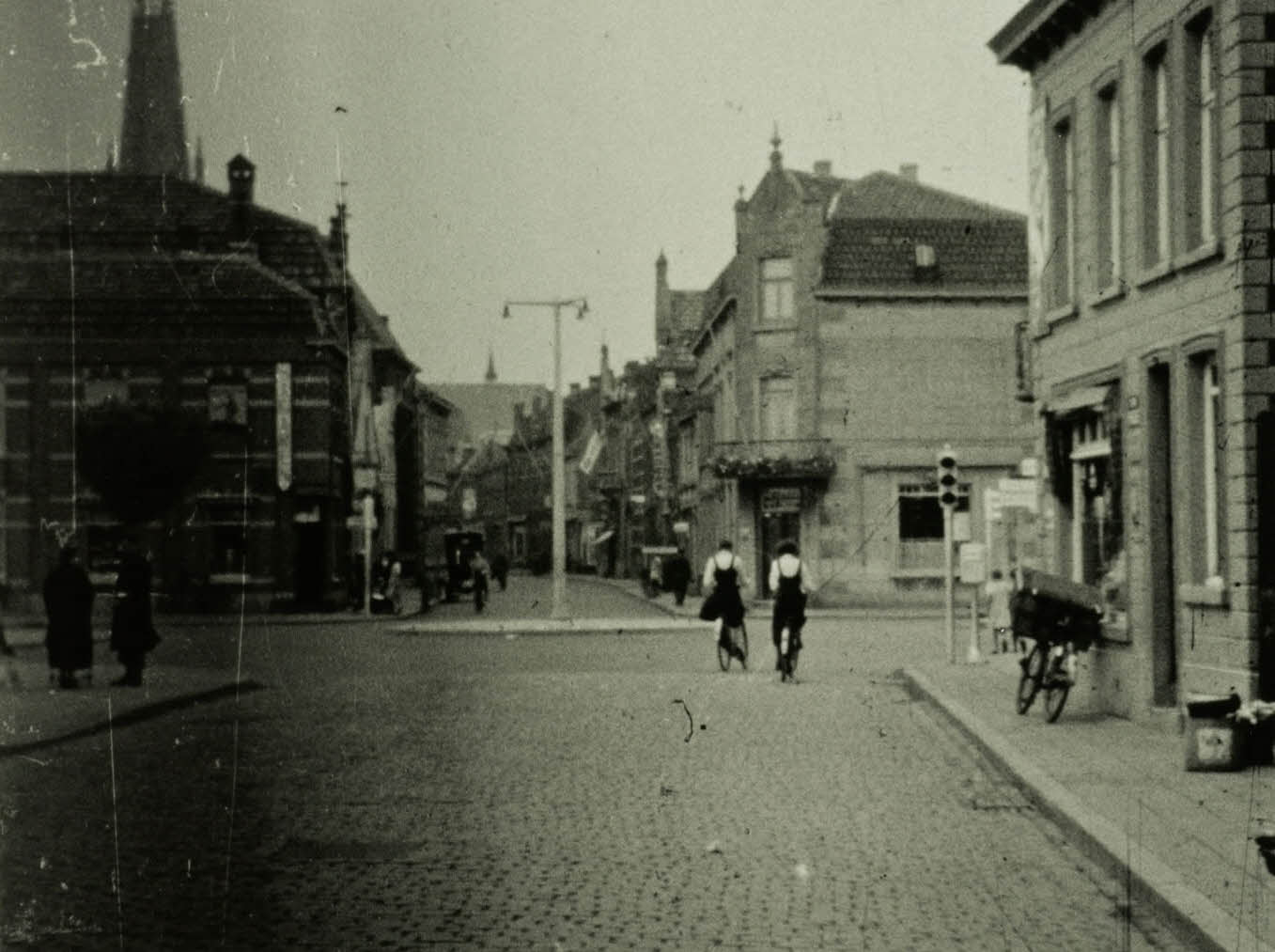 Zoals gezegd gaat het hier om een still van een film (vandaar de wat matige kwaliteit van het beeld). De maker was Jacques de Haan. De man van de kleurendia’s uit de Tweede Wereldoorlog, die samen met zijn broer Joseph een schat aan fotomateriaal overleverde uit de jaren 30 en 40 van de vorige eeuw. Wat minder bekend is, is dat hij verdienstelijk filmde en het Erfgoedcluster heeft films van hem.