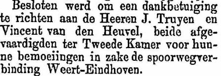 Hierin verzoekt de Kamer de minister te komen tot de aanleg van een spoorverbinding tussen Weert en Eindhoven.