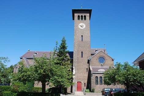 Deze vrijstaande kruiskerk is gebouwd naar het ontwerp van de architecten J. (Jos) Th. J. Cuypers en P. (Pierre) Cuypers jr. in een traditionele architectuur met elementen van de neoromaanse stijl. ![]() WetenswaardigDe kerk bestaat uit een hoog schip, gedekt met een relatief laag zadeldak, evenwijdig aan de straat, waar tegen aan de voor- en achterzijde vier respectievelijk vijf dwarskapellen. Klik op de icoontjes in de rechterkolom voor meer informatie. | Terugblik1936Het college van burgemeester en wethouders verstrekt op 3 april de bouwvergunning. 2005Het college van burgemeester en wethouders wijst op 4 januari het object aan als monument. 2012Het college van burgemeester en wethouders verstrekt op 7 februari een subsidie van € 7.000,00 voor het vervangen van het voorzetglas van de glas-in-loodramen. Lees ook