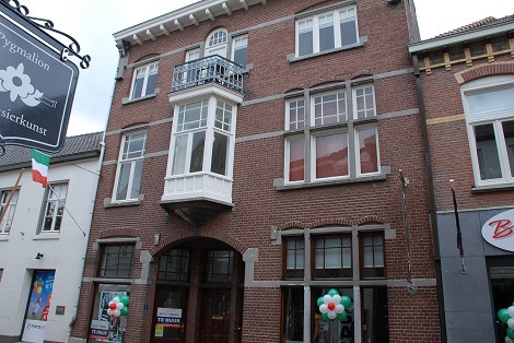Het uit drie bouwlagen bestaande pand is voorzien van een zadeldak. ![]() WetenswaardigHet object maakt deel uit van het beschermd stadsgezicht I. Binnenstad met uitlopers Klik op de icoontjes in de rechterkolom voor meer informatie. | Terugblik1912Het college van burgemeester en wethouders verleent op 1 maart een vergunning voor het bouwen van het pand voor edelsmid Camille Esser. De architect is Joseph Rouleau. 1987Op 12 mei wijst het college van burgemeester en wethouders het object aan als monument. 1993Het pand wordt gesplitst in twee winkels op de begane grond en drie appartementen op de overige bouwlagen waarvoor op 27 januari door het college van burgemeester en wethouders de vergunning wordt verleend. Lees ook