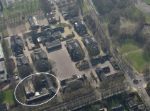 Het kantinegebouw staat aan de noordwest zijde van het terrein, met de achtergevel naar het exercitieterrein gericht, links van het bureelgebouw.