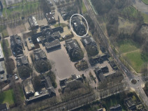 Aan de zuidwestzijde van het legeringsgebouw bevindt zich een privaat, met een opstand van bruingele baksteen met metselwerk in klezoorverband, plint en rollaag in gemêleerde baksteen, afgesloten door een kunststenen band. ![]() WetenswaardigOorspronkelijk stonden vier privaten op het terrein. Dit is een van de twee privaten die nog op het terrein staan, en behoort tot het legeringsbouw 4. Dit monument maakt deel uit van het complex Kazernelaan 101 Klik op de icoontjes in de rechterkolom voor meer informatie. | Locatie![]() |